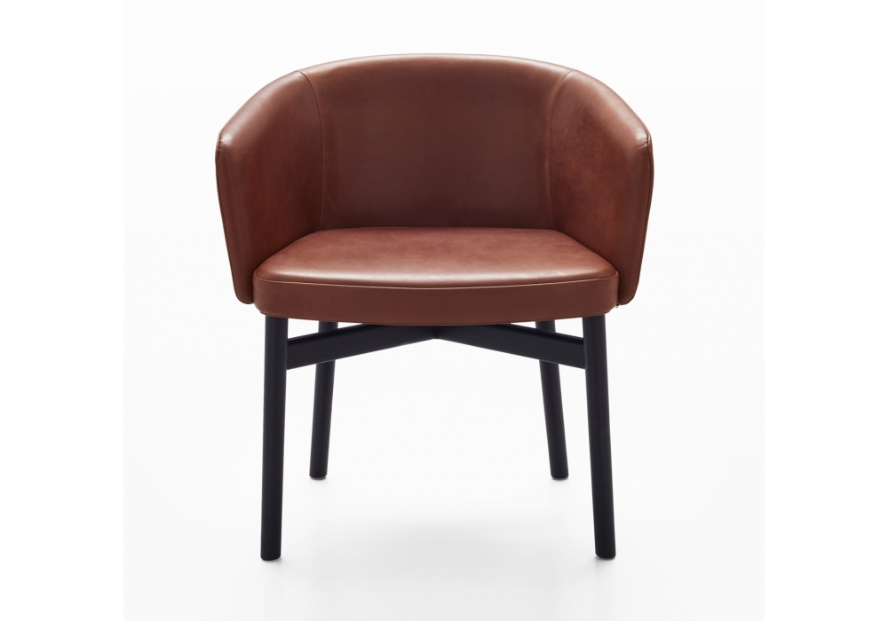 Krusin diseñado por Marc Krusin para Knoll es un sillón con estructura de madera maciza de fresno con juntas y espigas. Acolchado de espuma de poliuretano sobre estructura metálica con correas y tapizado en tela o piel.