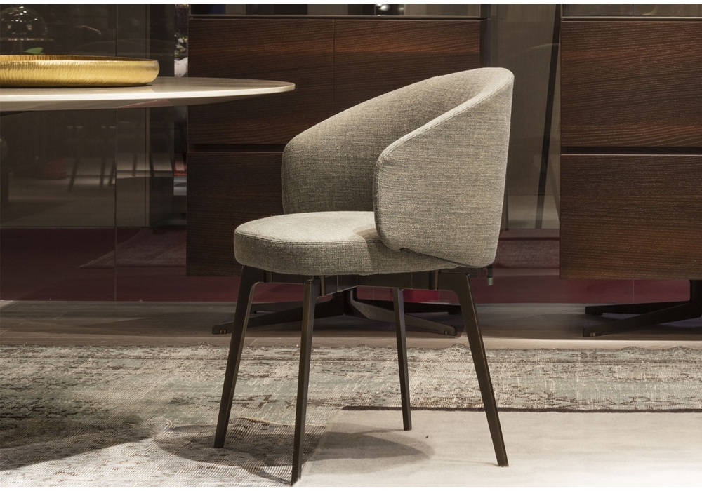 Bea diseñado por Roberto Lazzeroni para Lema es un sillón con la estructura en metal bronceado y la carcasa tapizada en tejido o piel.