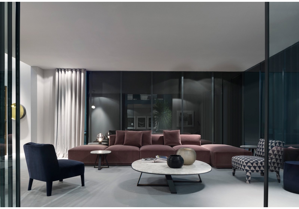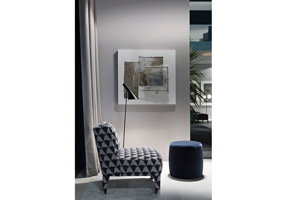 Cecile diseñado por Andrea Parisio de Meridiani es una butaca acolchada con revestimiento fijo. Estructura en madera y metal, relleno en poliuretano expandido moldeado y fibra de poliester. Cojín respaldo en pluma soportada, patas con revestimiento desenfundable en tela o fijo para versión en piel.