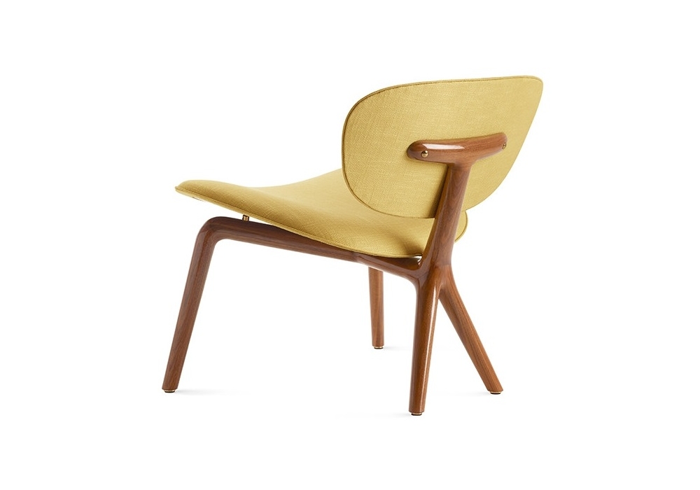 Rondine diseñado por Mattia Albicini & Luca Martorano para Ceccotti Collezioni es un silloncito realizado en madera de nogal americano, asiento y respaldo en madera contrachapada curvada y tapizada en tejido, piel o piel natural.