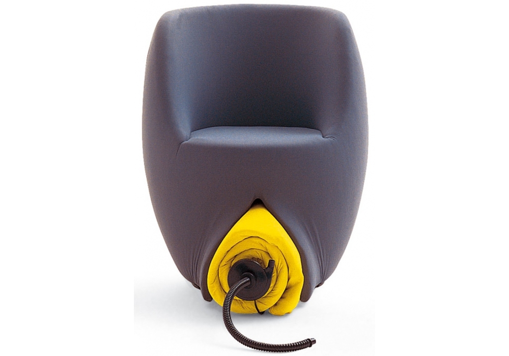 Pisola diseñado por Denis Santachiara para Campeggi es un pequeño sillón que puede contener una cama de aire con un inflador eléctrico incluido. La estructura es realizada en metal, mientras que el acolchado de poliuretano es cubierto con un relleno de poliéster. El colchón hinchable es realizado en PVC, un acolchado de poliéster ligero divide el revestimiento de Lycra del PVC.
