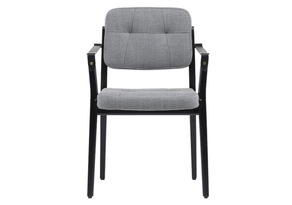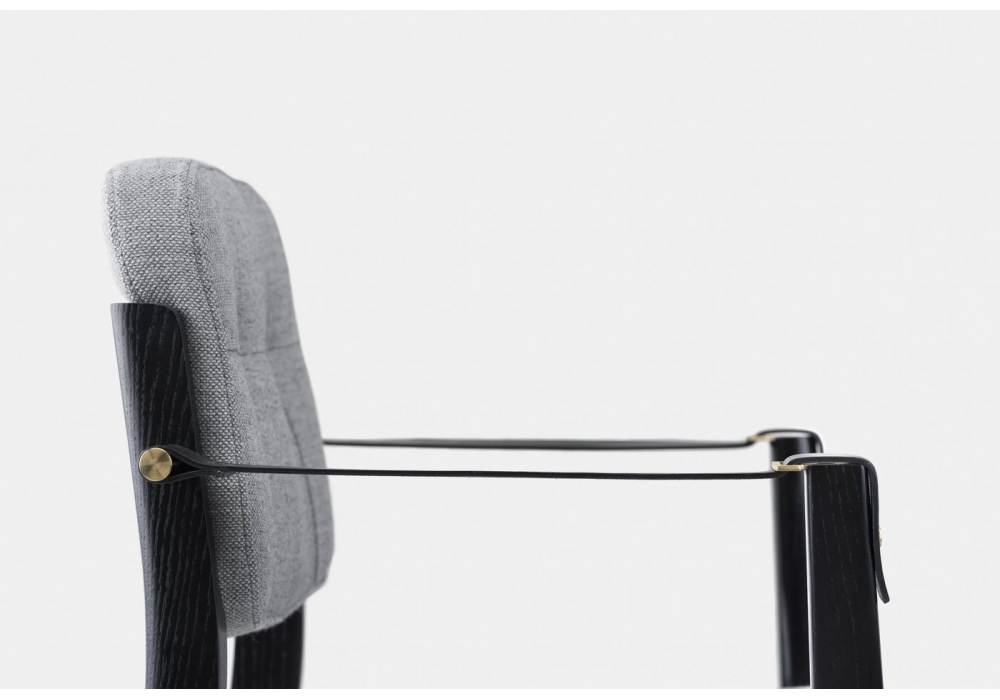 Capo diseñado por Neri & Hu para De La Espada es un sillón comedor con revestimiento en tejido o piel y estructura en madera disponible en diferentes acabados. Apoyabrazos en piel negra o marrón con detalles de color latón.