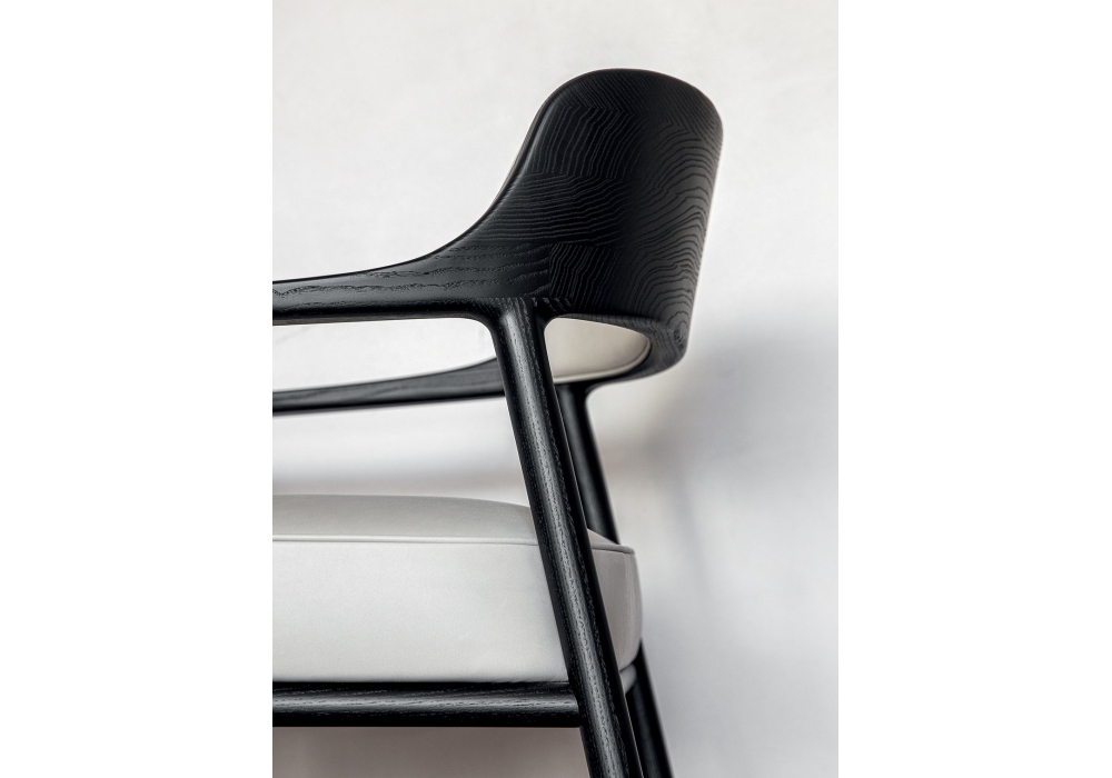 Walter diseñado por Vincent Van Duysen para Molteni&C es un sillón realizado con estructura en eucalipto o fresno teñido de negro y tapizado en piel o tela en diferentes acabados. Disponible con o sin cojín de respaldo.