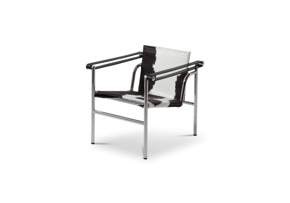 1 Fauteuil Dossier Basculant diseñado por Le Corbusier, Pierre Jeanneret, Charlotte Perriand para Cassina es un sillón realizado con estructura pintada de negro o cromado. Asiento y respaldo en cuero de silla de montar con apoyabrazos coordinados. En las versiones con piel forrada de piel los apoyabrazos son de piel negra. Disponible en diferentes acabados.