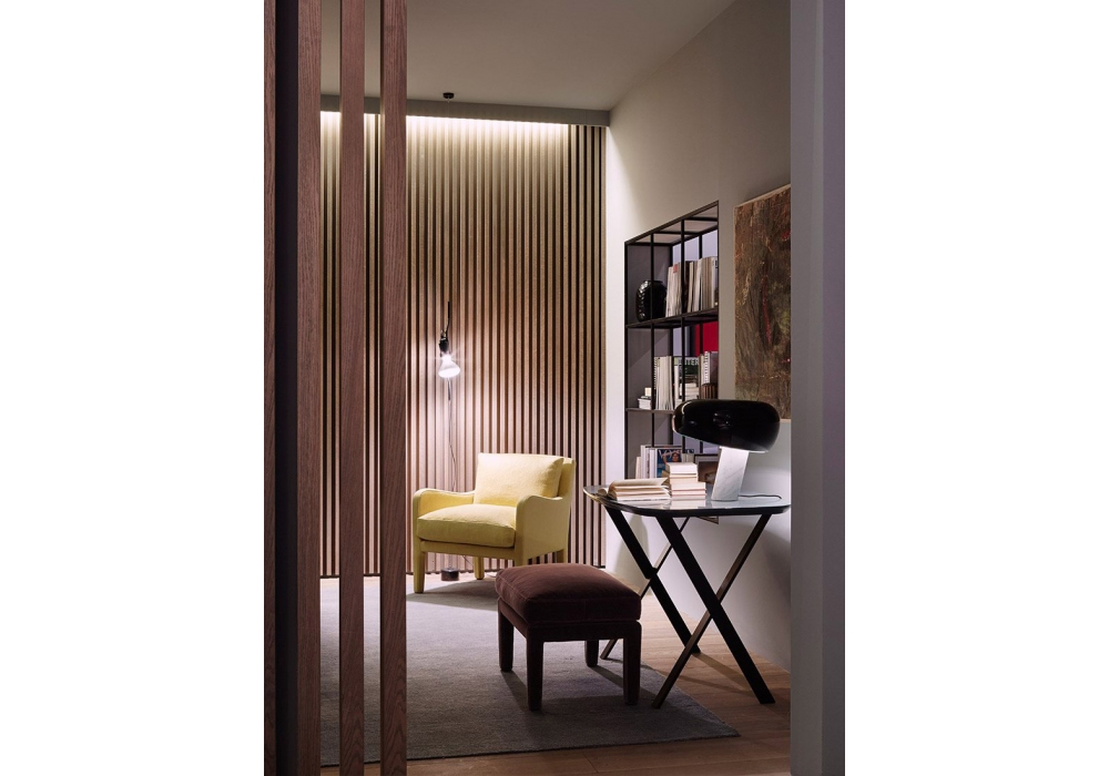 Forrest Soft diseñada por Andrea Parisio para Meridiani es una pequeña butaca con estructura de madera revestida en tela o piel con revestimiento fijo. Cojín asiento, respaldo en pluma soportada.