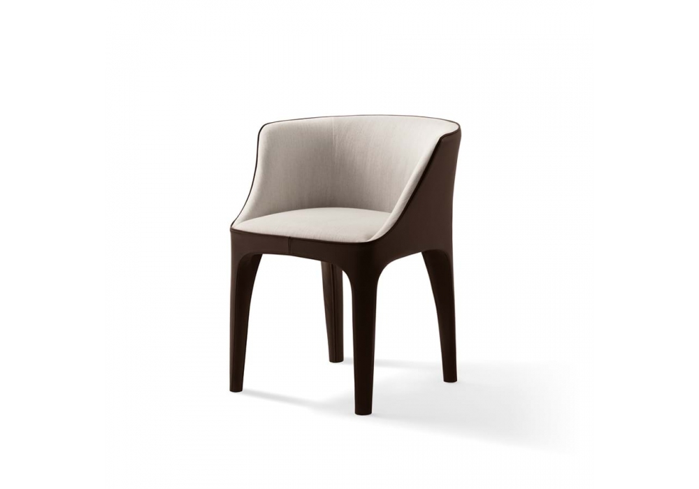 Diana diseñado por Carlo Colombo para Giorgetti es un sillòn con estructura de perfiles de acero y acolchado de espuma de poliuretano. La tapicería es bicolor, con el exterior y patas en piel y el interior en tejido o piel. Las puntas de las patas son de pvc negro.