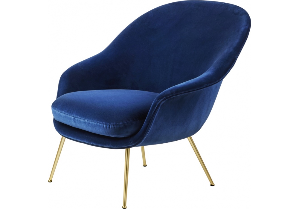 Bat diseñado por GamFratesi para Gubi es un sillón totalmente tapizado disponible con patas de metal o madera.