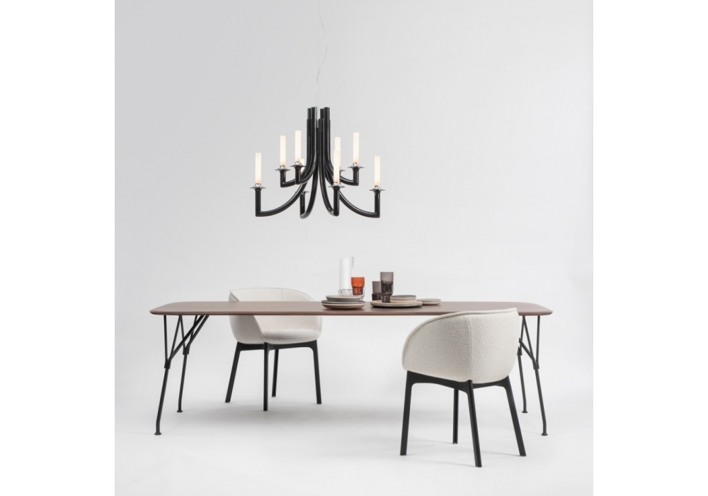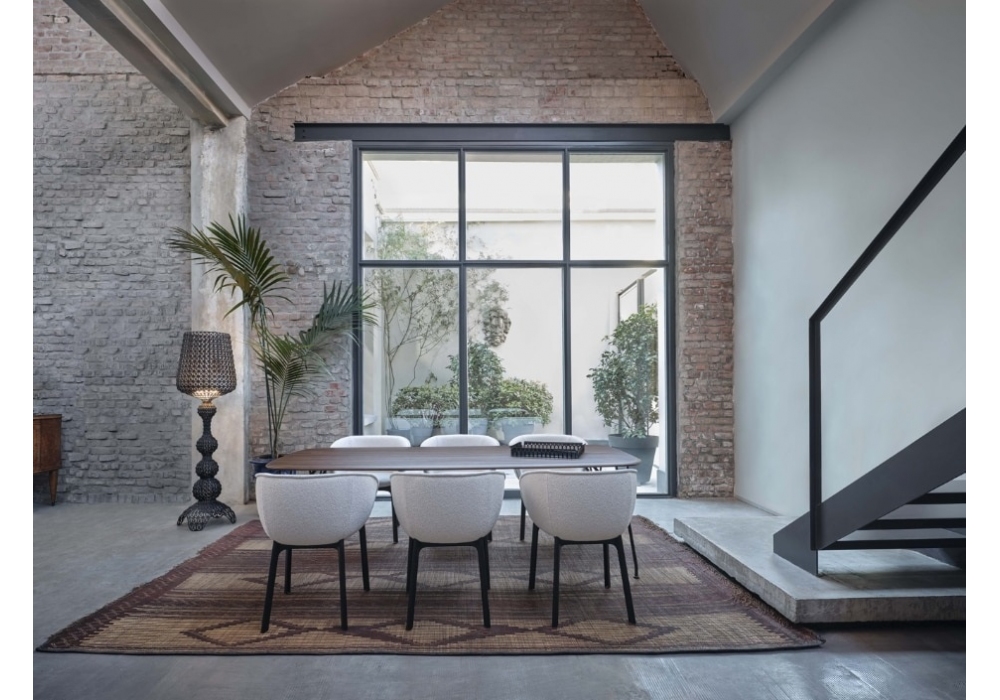 Charla diseñado por Patricia Urquiola para Kartell es un sillón realizado con estructura en tecnopolímero termoplástico reciclado y reciclable de color masa y asiento en poliuretano tapizado en tela. Disponible en diferentes acabados.