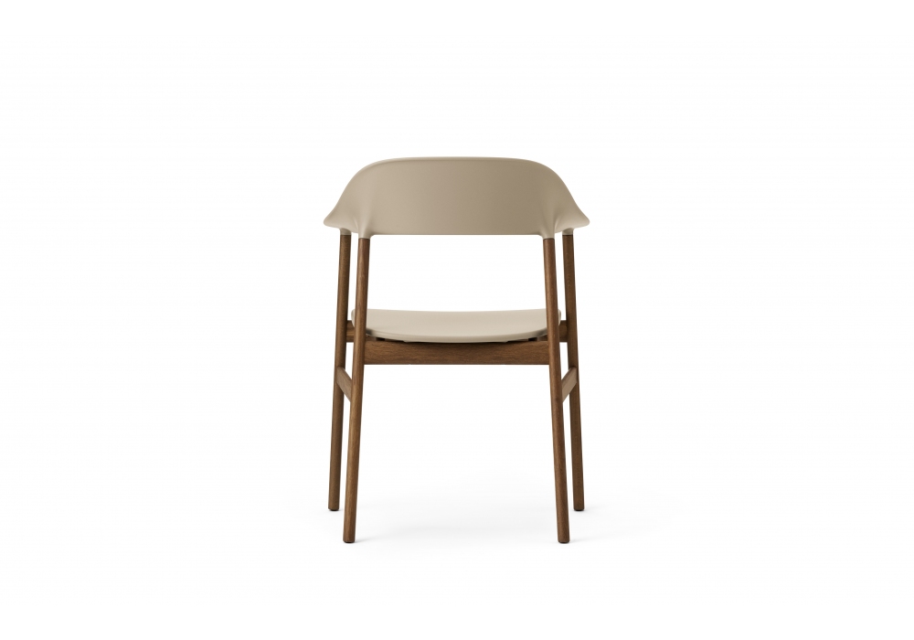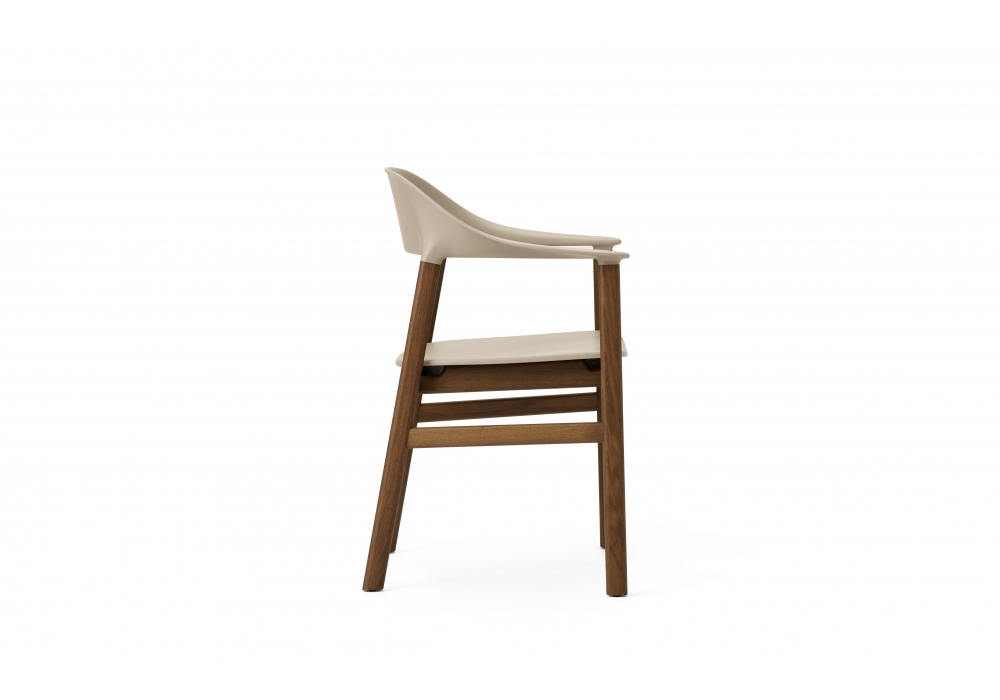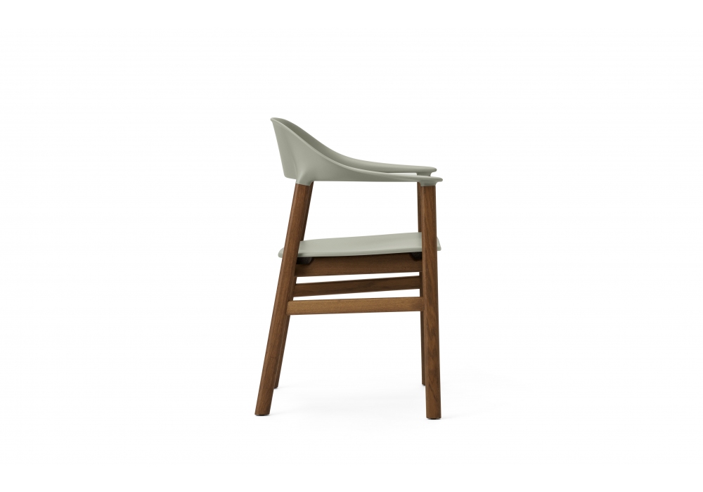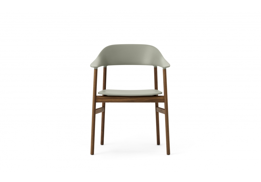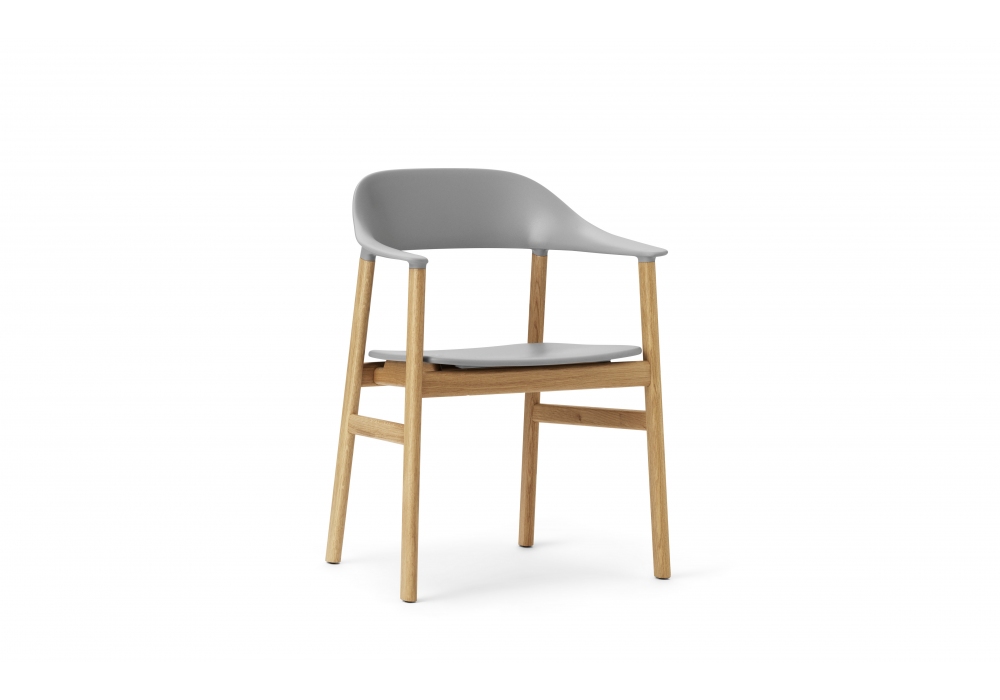 Herit, diseñada por Simon Legald para Normann Copenhagen, es una butaca, estructurada en polipropileno en combinación con roble, en los acabados; gris, blanco, negro, arena o verde polvoriento. Herit está disponible en dos versiones diferentes, con estructura y patas en roble o roble ahumado.