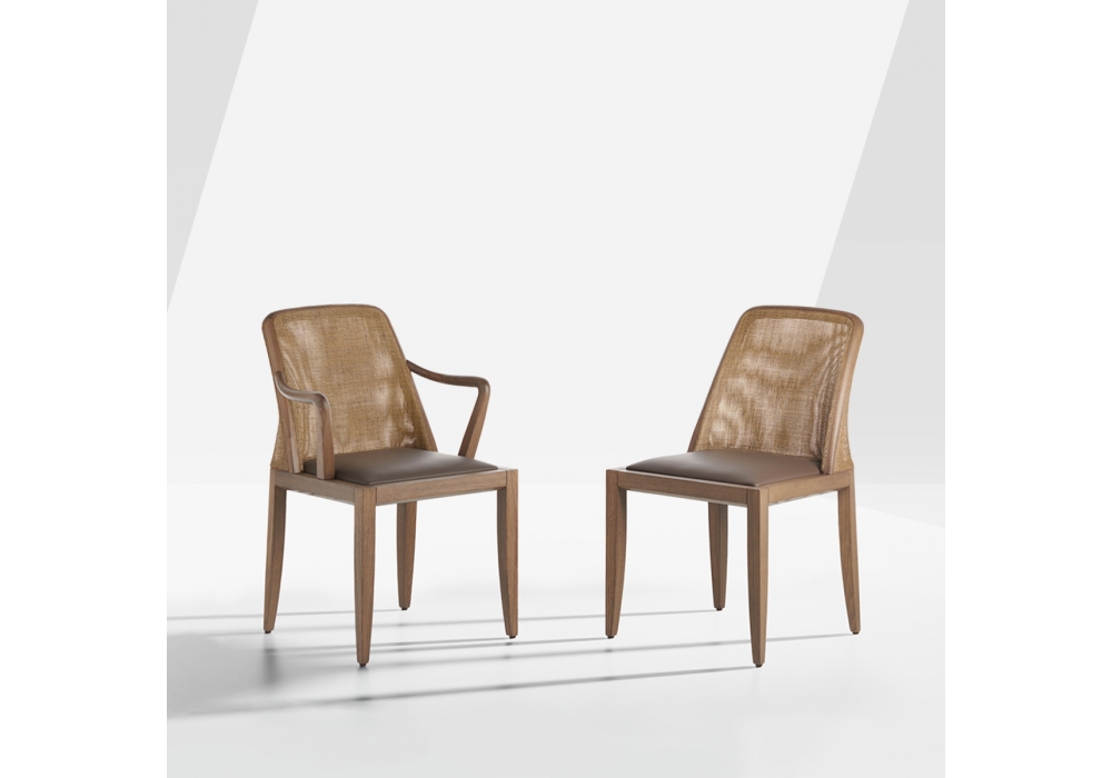 Grace diseñada por Mauro Lipparini para Potocco es una butaca con estructura en madera de fresno en diferentes acabados. El asiento está acolchado con espuma de poliuretano ignífugo, revestido de varios tejidos y pieles y el respaldo es de caña.