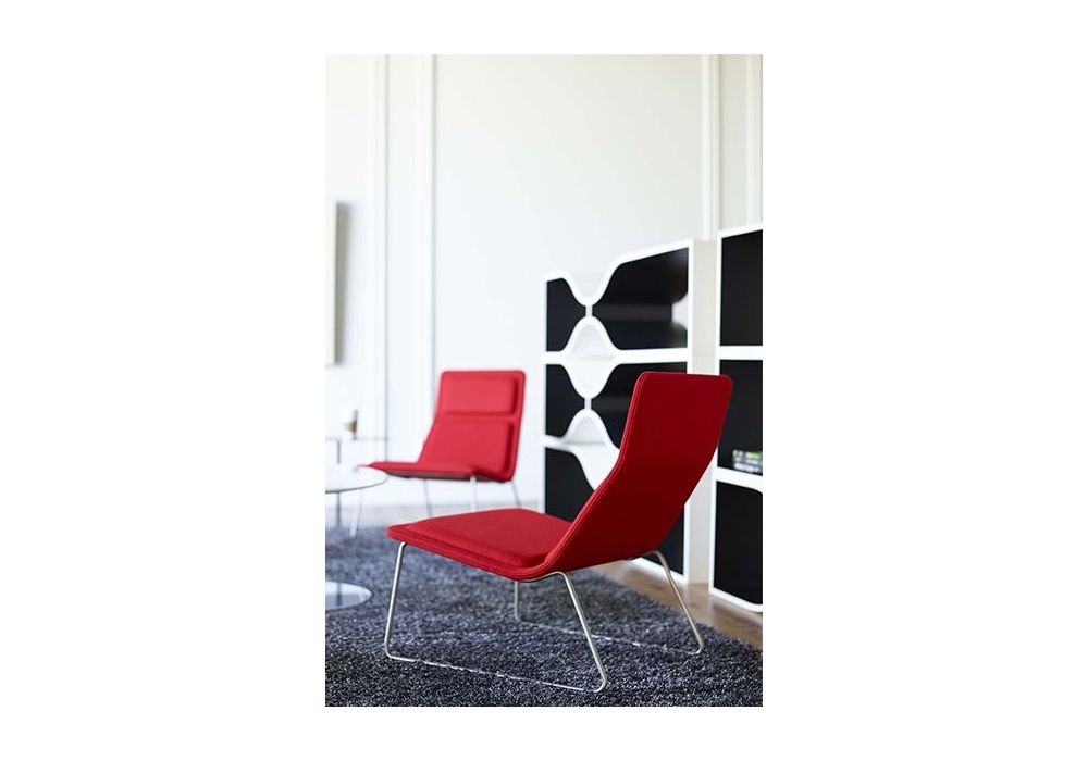 Low Pad diseñado por Jasper Morrison para Cappellini es un sillón realizado con base en acero inoxidable pintado satinado o mate y revestimiento fijo en tela o piel. Disponible en dos dimensiones.