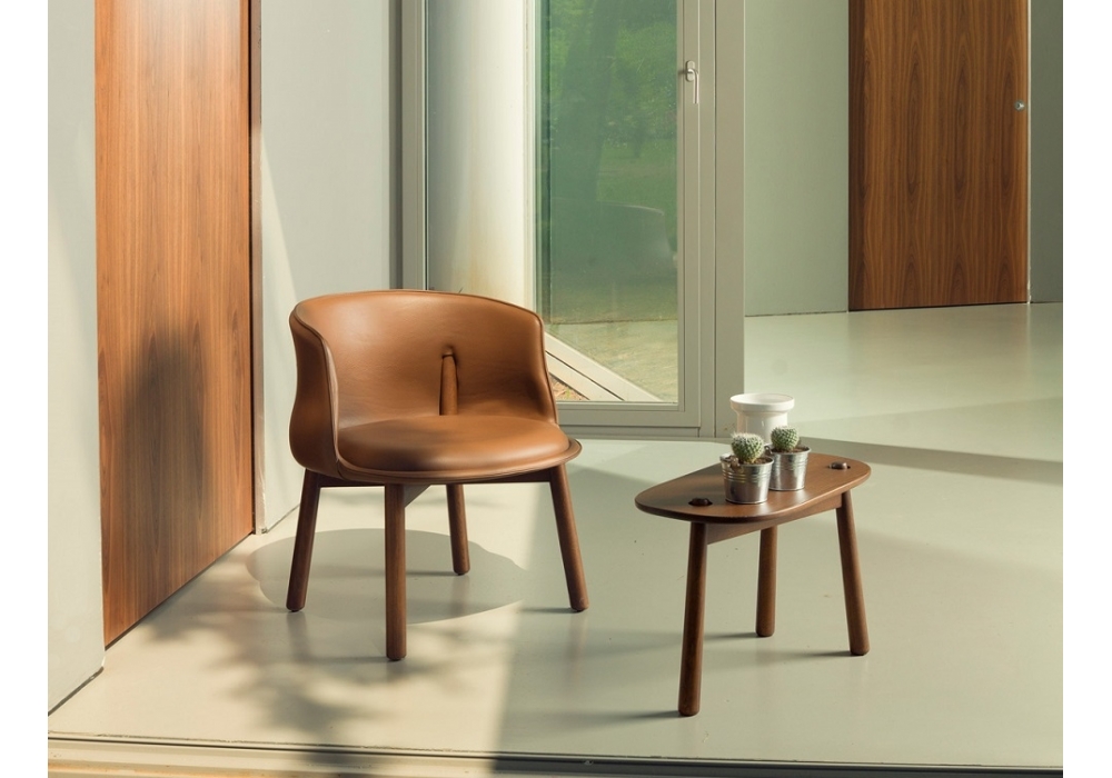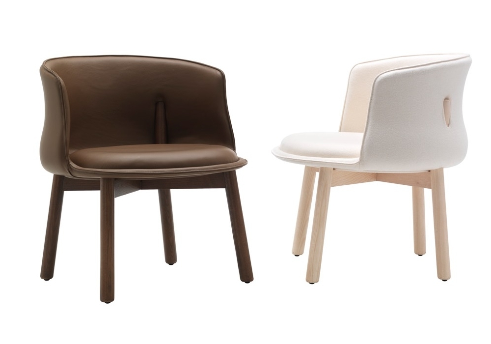 Peg diseñado por Nendo para Cappellini es un sillón realizado con patas en fresno macizo y revestimiento en tela o piel.