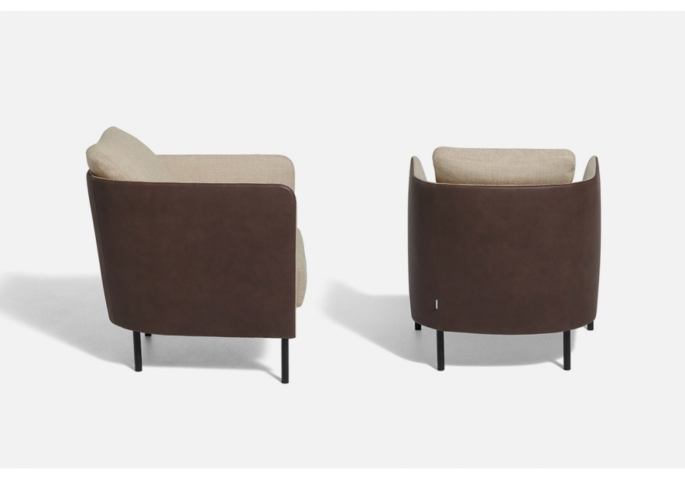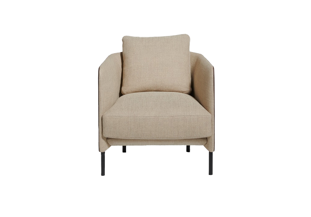 Tiny Blendy diseñado por Omi Tahara para De Padova es un sillón de acero con correas elásticas, el asiento es de pluma de ganso con soporte de espuma de poliuretano. Disponible con diferentes tapizados en tela, piel o terciopelo.