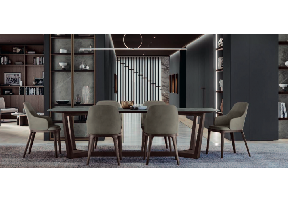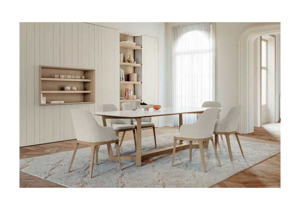 Adam diseñado y producido por Olivieri es un sillón con respaldo en contrachapado curvo revestido en tejido o piel con base de madera maciza. Disponible en diferentes revestimientos.