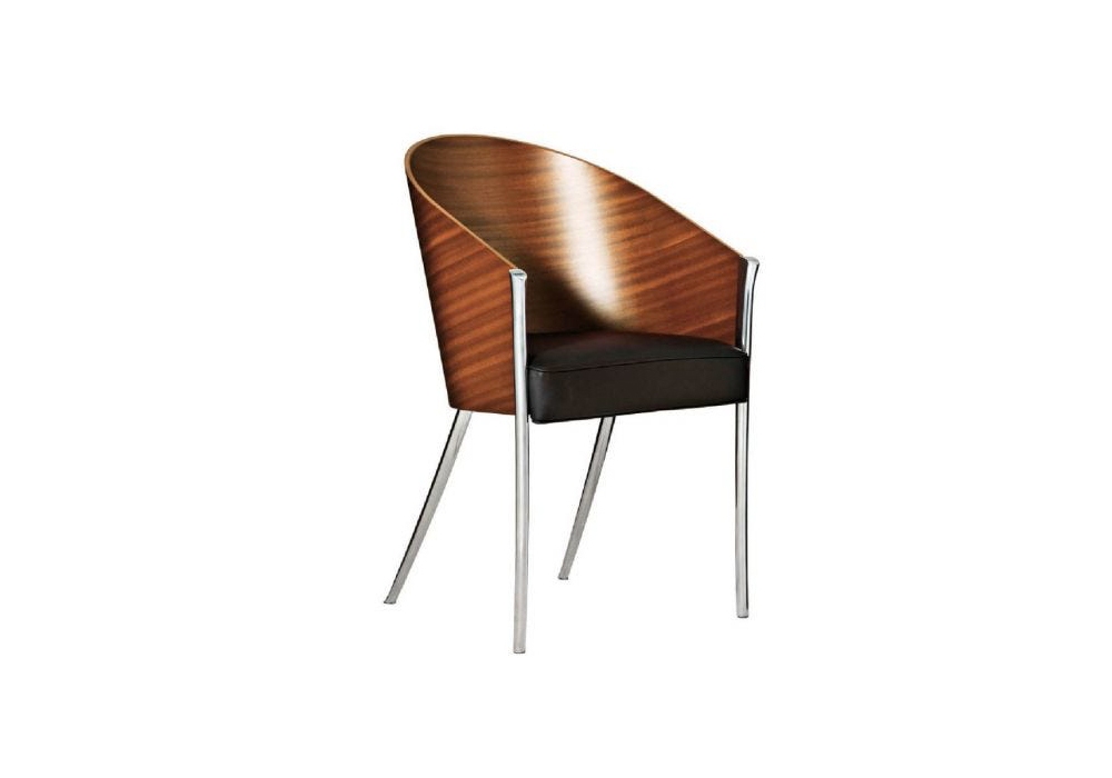 King Costes diseñado por Philippe Starck para Driade es un sillón con estructura en aluminio fundido a presión pulido, carcasa en contrachapado curvado con acabado en caoba, caoba ebonizada o bambú. Acolchado de espumas de poliuretano con funda fija de piel. Solo para uso interno.