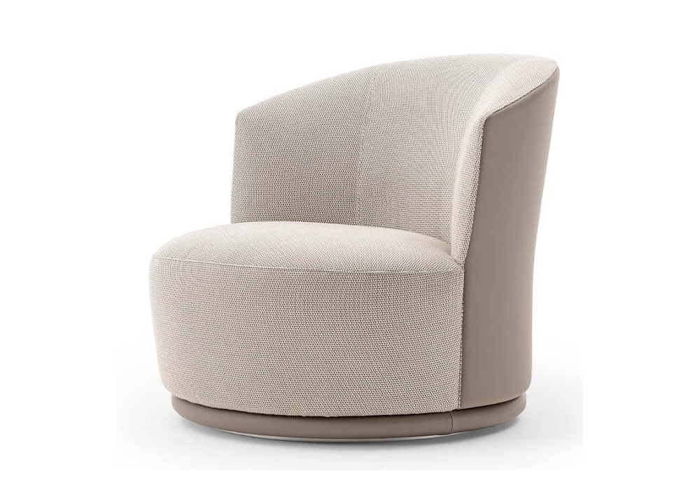 Blues diseñada por Giuseppe Viganò para Turri es una sillón con estructura en madera maciza y contrachapado con acolchado en espuma de poliuretano multidensidad. Carcasa y tapicería en diferentes pieles y tejidos. Base giratoria fabricada en madera MDF pintada.