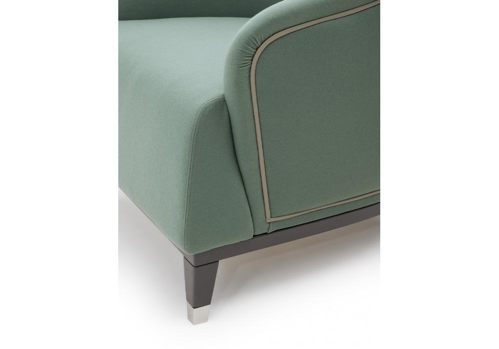 Jolly producido y diseñado por Turri es un sillón con estructura multiestrato y madera maciza, acolchada con espuma de poliuretano de densidad variable y tapizada en diferentes tejidos o pieles no desenfundables. Patas en MDF y madera maciza en acabado poliéster brillante decorado a mano. Los pies tienen piezas de metal en un acabado dorado claro o bronce.