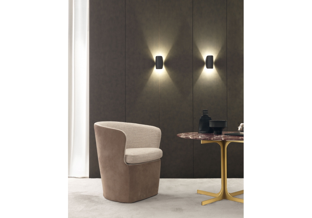 Surface diseñado por Marco Piva para MisuraEmme es un sillón realizado con carcasa de poliuretano espumado en frío con tapizado en tejido o piel, desmontable por personal experto. Cojín de asiento tapizado. Es posible cubrir el frente del sillón con una tela diferente a la del respaldo.