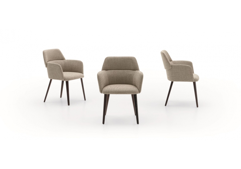 Archie diseñado por Busetti-Garuti-Redaelli para Ditre Italia es un sillón con patas de madera, asiento y respaldo tapizados en tejido o piel. Disponible en diferentes acabados.