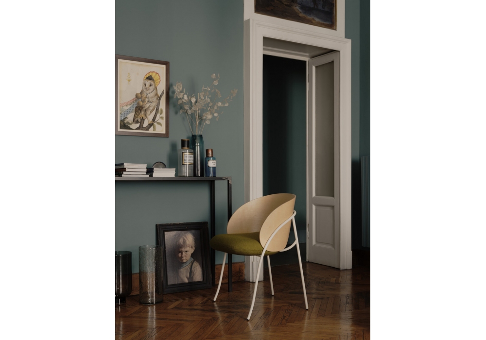Hagu diseñada por Ab Concept para Gebrüder Thonet Vienna es una butaca pequeña con estructura tubular de metal, respaldo en madera contrachapada enchapada en fresno, asiento tapizado con revestimiento en tela o piel. Disponible en diferentes acabados.