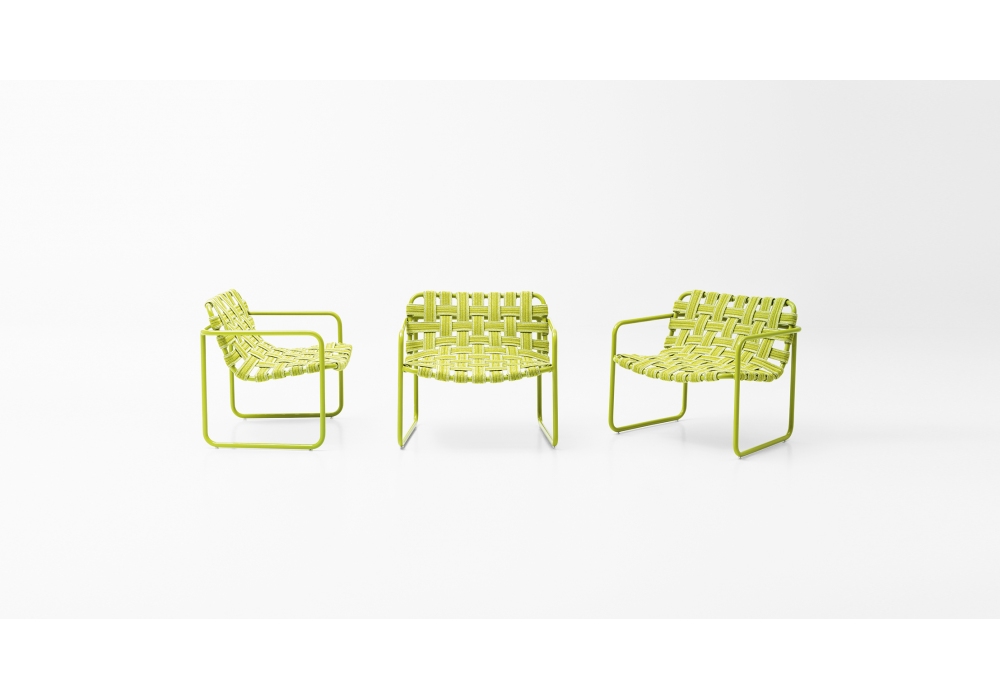 Baleari diseñada por Lina Obregón para Paola Lenti es una butaca realizada en aluminio pintado marfil mate o grafito o pintado brillo, puntas en material plástico. Revestimiento de tela. Disponible en diferentes acabados.