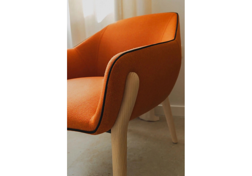 Nido diseñado por Rafa García para Sancal es un pequeño sillón con patas de madera, asiento acolchado y respaldo tapizado en tela o piel. Disponible en diferentes acabados y tamaños.