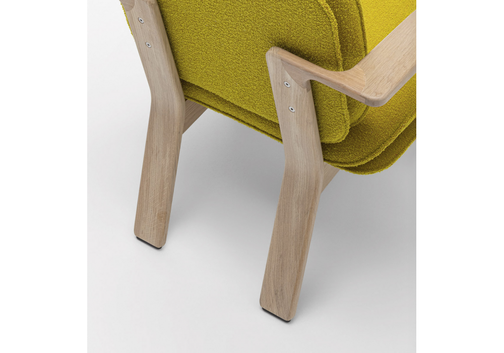 Berni diseñado por Franco Poli para Paola Lenti es un sillón con estructura y juntas de roble macizo teñido, con extremos de plástico y fieltro. La tapicería es de tela desenfundable.