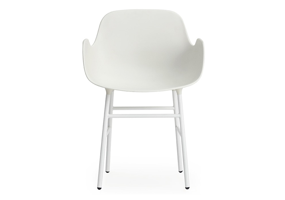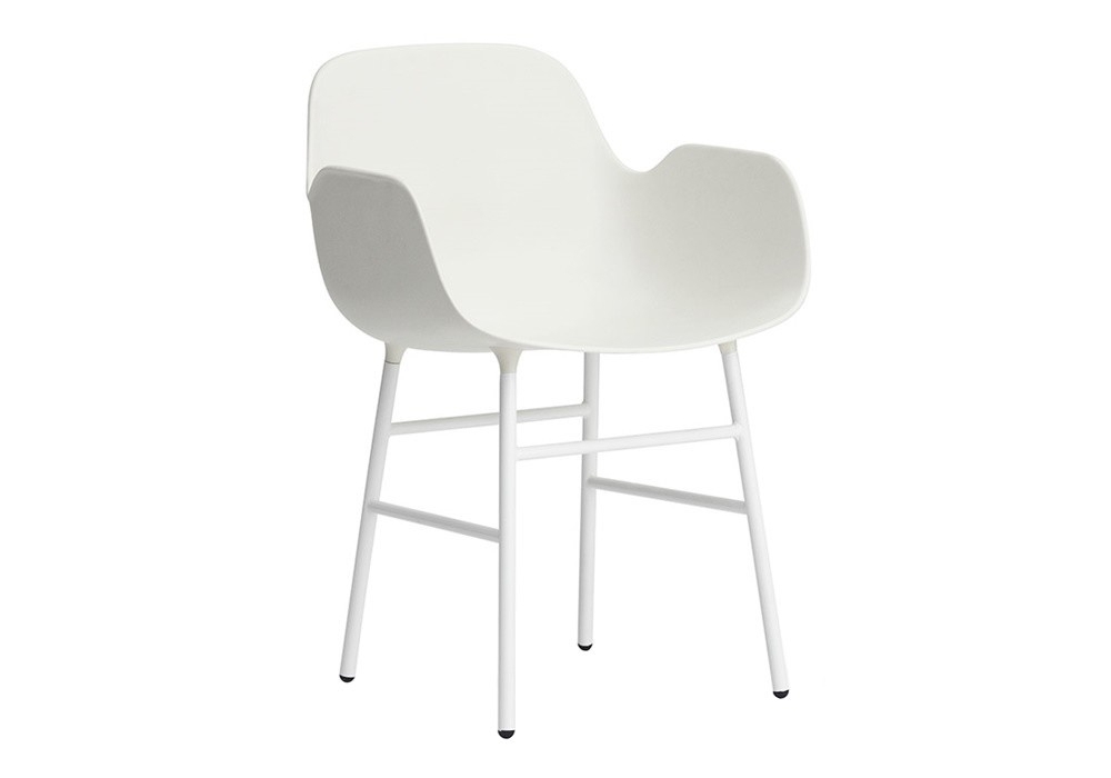 Form diseñado por Simon Legald para Normann Copenhagen, es un sillón con reposabrazos. Form es un sillón moderno, de plástico y con estructura de roble, nogal o acero lacado. La cáscara tiene una forma ligeramente curvada, que acompaña al cuerpo asegurando una perfecta comodidad de asiento. La variante de acero tiene un perfil más delgado con un elegante aspecto tono sobre tono.