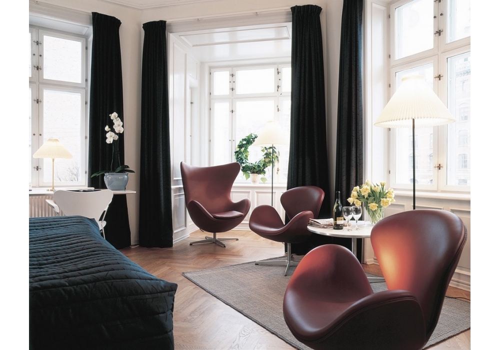 Swan diseñada por Arne Jacobsen para Fritz Hansen es una butaca giratoria con tapizada en tela o piel y base de 4 radios en aluminio pulido o con recubrimiento de polvo. Disponible en diferentes acabados.