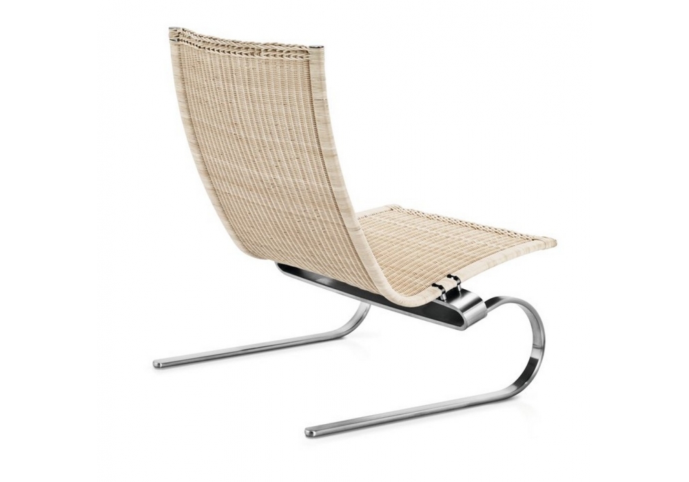 PK20 diseñada por Poul Kjærholm para Fritz Hansen es una butaca realizada en mimbre. Base en acero cromado mate.