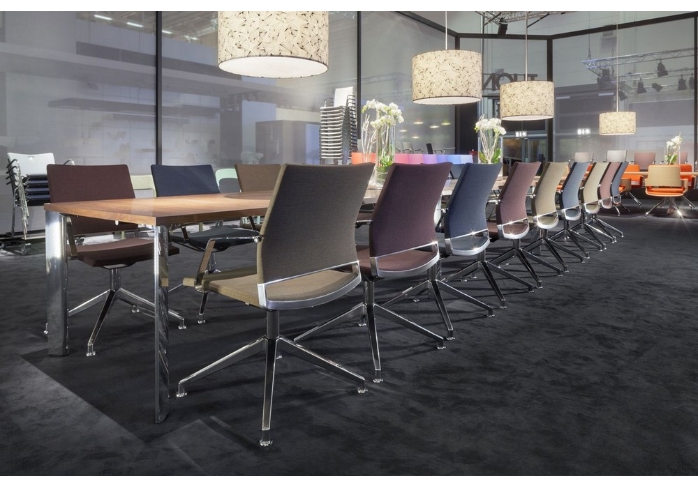 Program S 95 es un sillón giratorio con respaldo bajo diseñado par Thonet Design Team: Randolf Schott para Thonet. Su fluida forma ergonómica y sus detalles marcados confieren a la S 95 ligereza visual y una elegancia distinguida. Las claras líneas y la correspondiente combinación de materiales muestran un carácter deportivo. Los componentes de la silla de conferencias se ensamblan perfectamente para crear una unidad integradora. El elemento constructivo más destacado es la separación entre respaldo y asiento. Igual que el acolchado y la base en cruz, el respaldo evoca al diseño actual de automóviles. Otro atractivo son las incrustaciones en la base de aluminio de cuatro patas: las inserciones de distintos materiales le dan a la silla un toque especial. La S 95 cubre un amplio abanico de usos gracias a sus distintas variantes. Como modelo cantilever permite mantener una postura relajada y sostenida, principalmente durante largas reuniones.