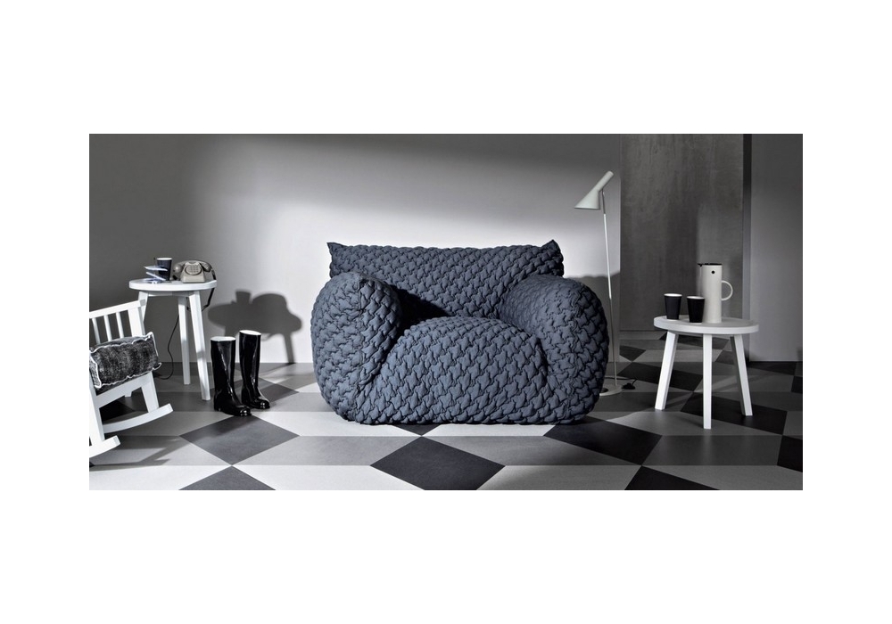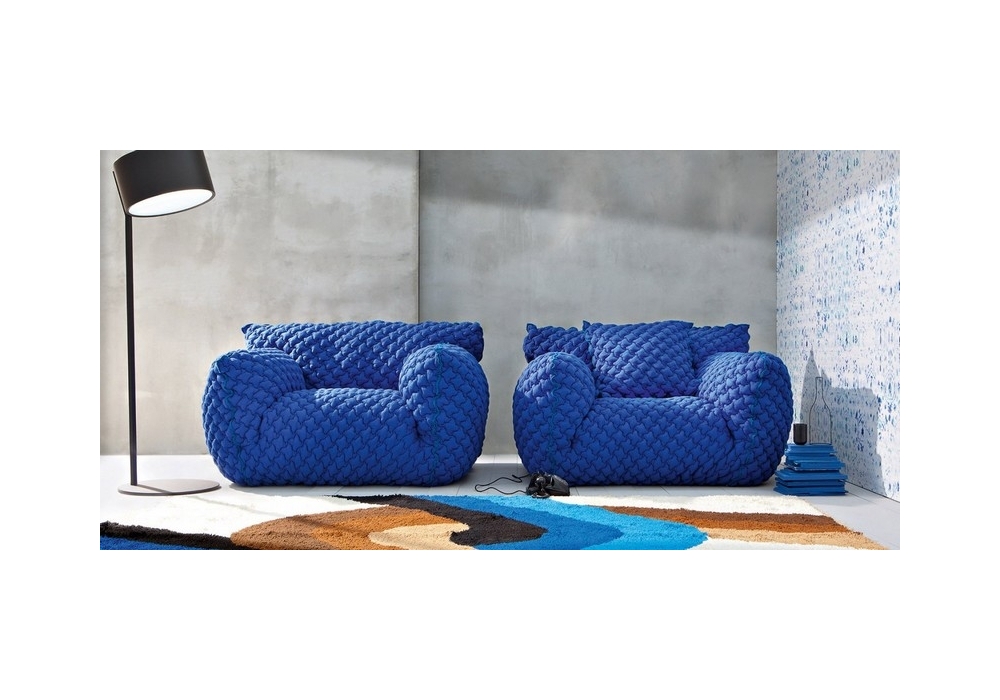 Nuvola diseñada por Paola Navone para Gervasoni es una butaca realizada con acolchado de espuma de poliuretano cubierto con edredón acolchado con plumón de ganso y copos de fibra de poliéster, funda desenfundable.