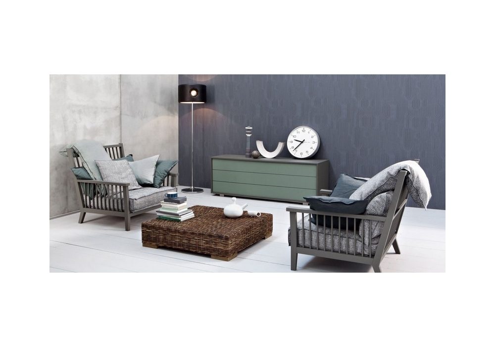Gray 01 diseñado por Paola Navone para Gervasoni es un sillón realizado con estructura en nogal o roble, los cojines son de plumón mixto con tapizado en tejido.