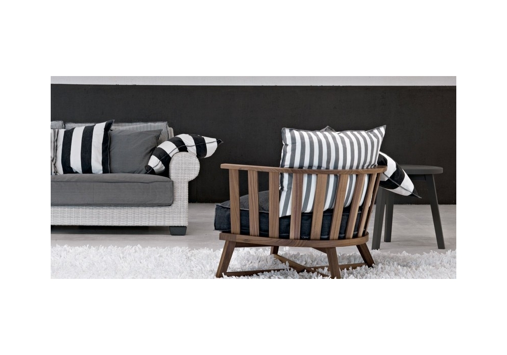 Gray 07 diseñada por Paola Navone para Gervasoni es una butaca realizada con estructura en nogal o roble, los cojines son en plumón mixto con tapizado en tela.