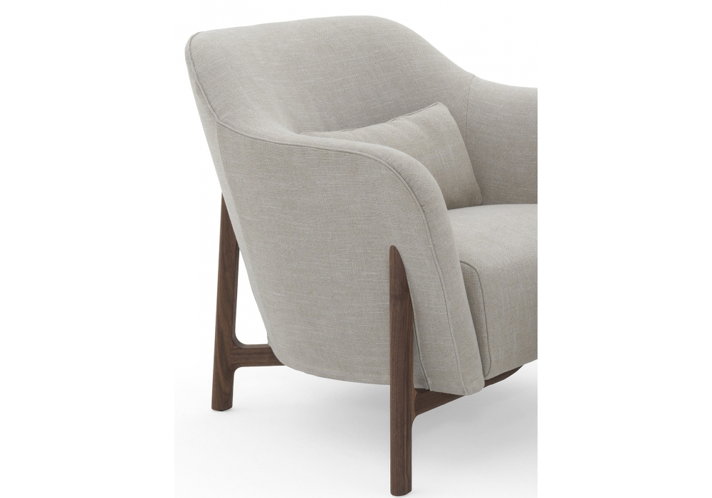 Pilotis diseñada por Philippe Nigro para Depadova es una butaca con estructura en acero y madera, patas en nogal macizo y acolchado en espuma de poliuretano. El tapizado disponible en diferentes acabados es desenfundable en tejido o fijo en piel o terciopelo.