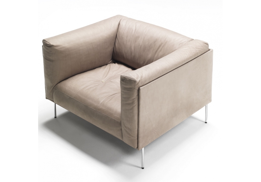 Rod designed by Piero Lissoni for Living Divani is a family of upholstered with a sophisticated design and great comfort, available as armchair, sofa and bench. Supporting structure in lacquered drawn tubular steel, seat sprung with coated rubber elastic straps and polyurethane foam. Backrest and armrest structure in self-supporting decorative HPL panel. Stainless steel feet, polished or matt satin-finish, screwed to the base with a bushing. Seat depth 60-80cm.
