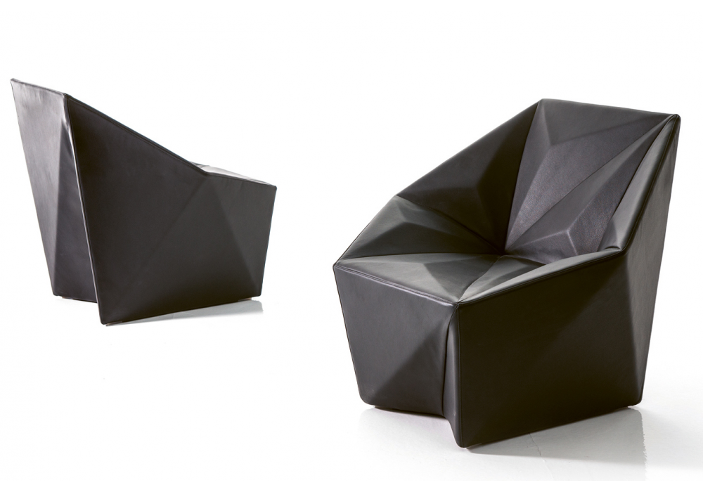 Gemma diseñada por Daniel Libeskind para Moroso es una butaca en poliuretano espumado en frío con estructura interna de acero. Tapizado en tela o piel.