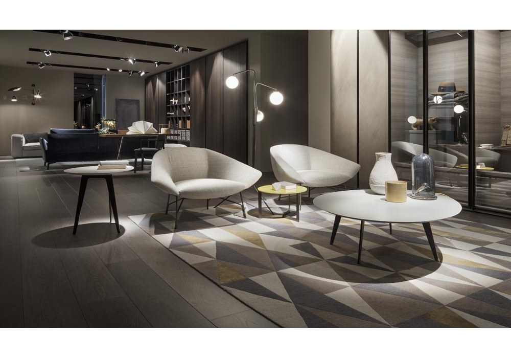 Lennox designed by Gordon Guillaumier for Lema is a lounge chair with structure made of metal and upholstery in fabric, eco-leather, or leather. This refined design is inspired to an open corolla, suspended into the void, on the light structure in metal in bronze colour, which turns into an idea for an elegant and discreet armchair for conversations. A private, soft and seductive nest for reading and listening to fine music. A detail that also inspired the name.