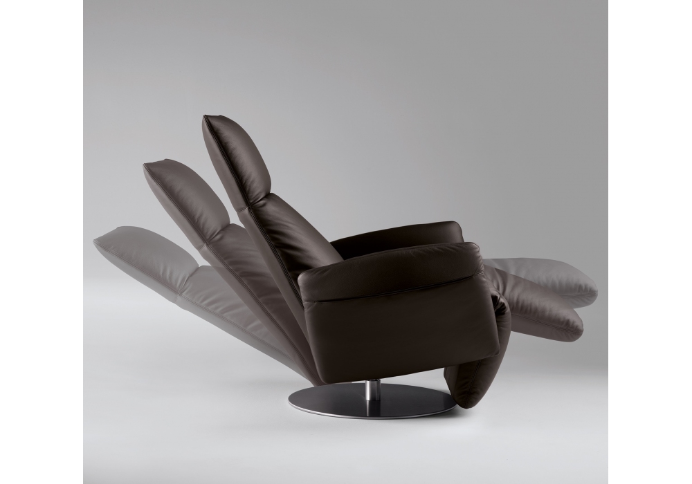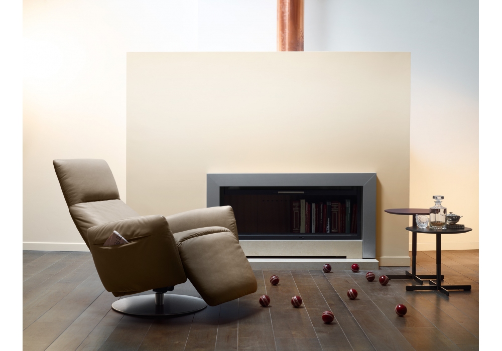 Pillow diseñado por Poltrona Frau es un sillón reclinable con estructura de soporte en metal y partes en contrachapado de abedul. Base redonda de acero plano disponible en acabado satinado o lacado negro mate. Un mecanismo permite girar el sillón 360°. El sillón se reclina manualmente o eléctricamente en la versión con batería recargable o alimentada por la red eléctrica. Revestimiento no desenfundable en cuero o tejido.