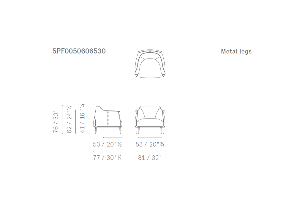 Archibald diseñada por Jean-Marie Massaud para Poltrona Frau es una butaca con cuatro patas de aluminio fundido conectadas a un bastidor de tubo de acero, disponible en los siguientes acabados: gris plomo, bruñido y titanio. Puede revestirse en cuero o tejido. Costuras en contraste en los bordes y en las superficies exteriores de la tapicería de piel. Pespuntes tono sobre tono en la versión en tejido.