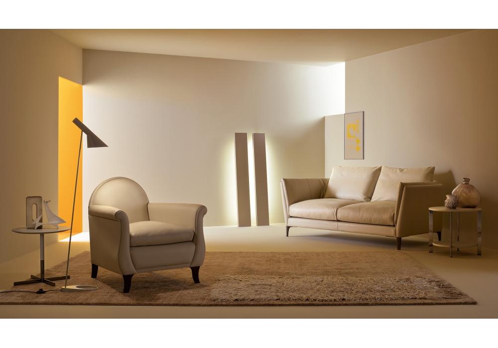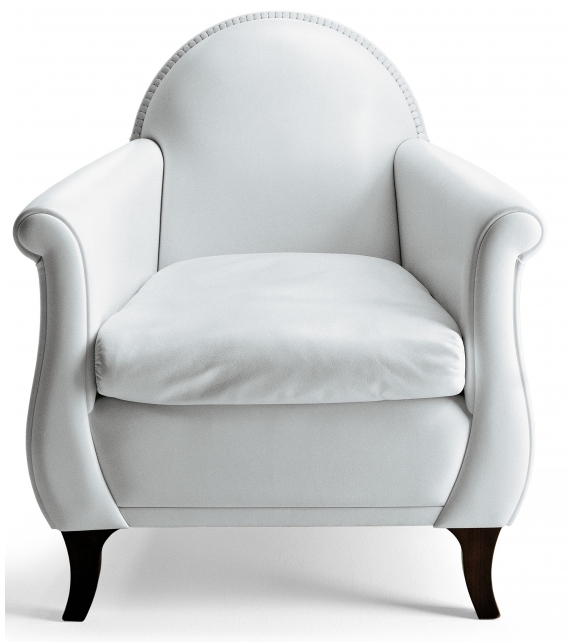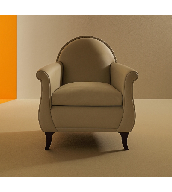 Lyra, diseñado por Poltrona Frau, es un sillón con estructura de madera de haya curtida y cojín de asiento relleno de pluma de oca. Los pies están disponibles en los siguientes acabados: haya teñida en nogal oscuro y madera lacada en negro. Tapizado en piel Pelle Frau® o tela. El respaldo exterior y el borde interior superior del respaldo están rematados con una hilera de tachuelas forradas de cuero. Placa dorada con baño galvánico de 24 kt.