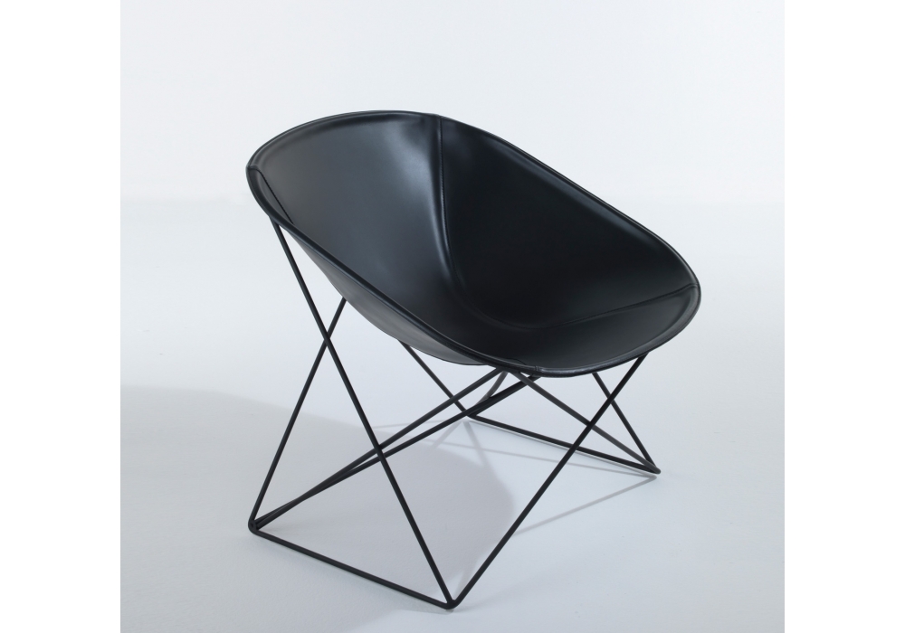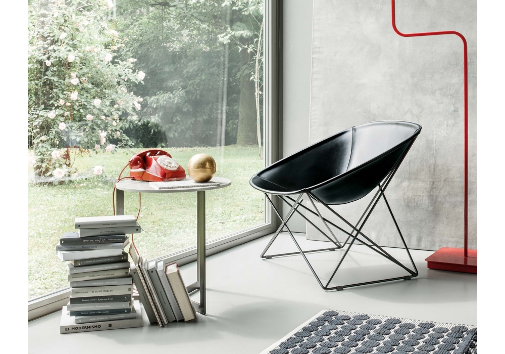 Popsi designed by Ferruccio Laviani for Lema is an armchair with structure made of metal and upholstery in hide-leather. The shell is emphasized by refined stitching.