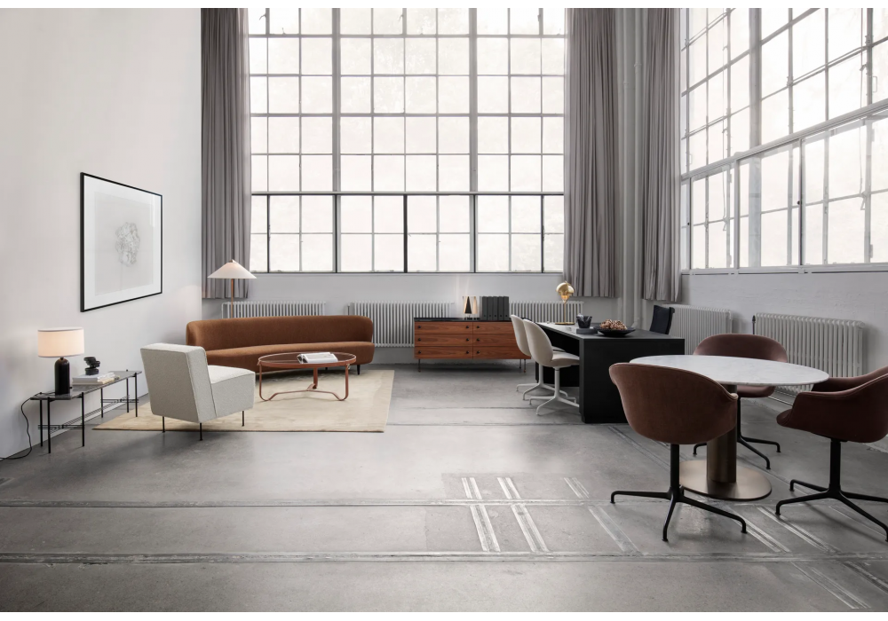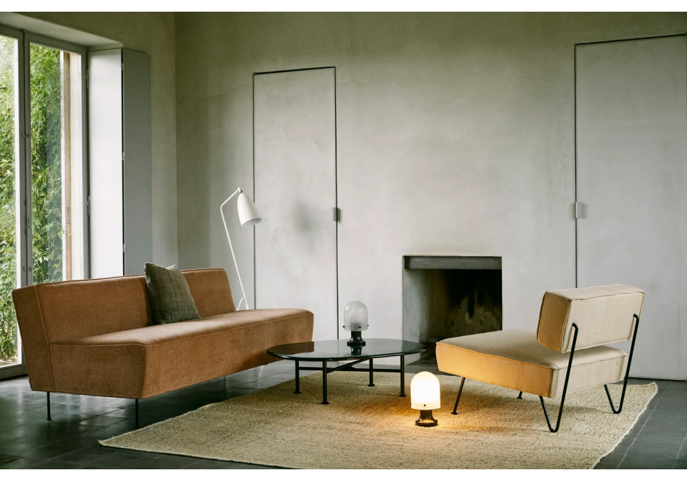 Modern Line Lounge diseñada por Greta M. Grossman para Gubi es una butaca realizada con patas de metal y estructura tapizada y acolchada. Revestimiento en tela o piel. Disponible en diferentes acabados y dimensiones.