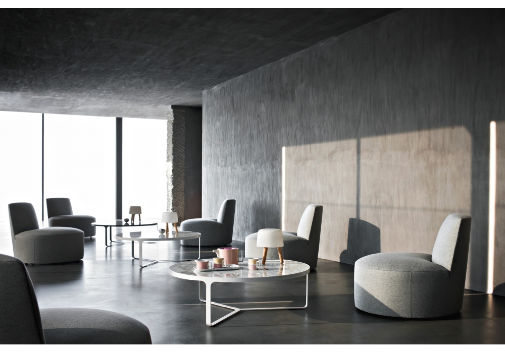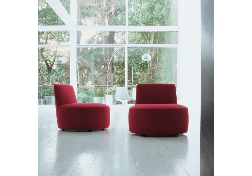 Baobab diseñada por Lievore Altherr Molina para Tacchini es una butaca con estructura interna en contrachapado de álamo, acolchado en espuma de poliuretano multidensidad y revestimiento externo disponible en tela o piel.
