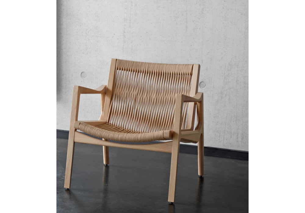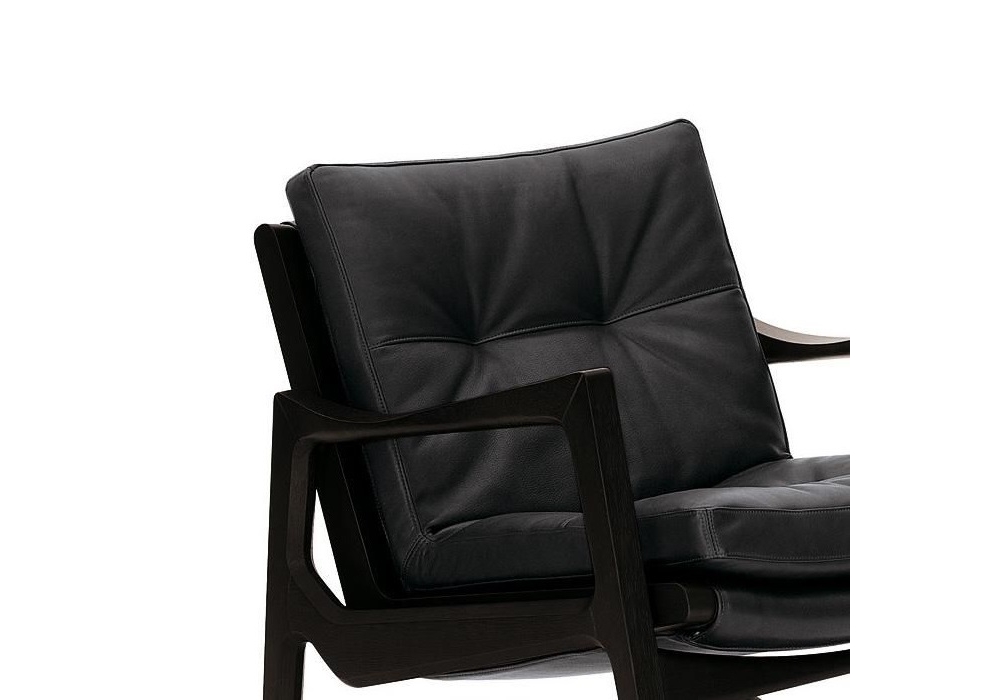 Euvira diseñada por Jader Almeida para ClassiCon es un sillón con estructura de roble macizo en acabado natural, barnizado en marrón o negra. Acolchado de poliuretano con cintas de goma y tapicería de piel o tela. Disponible en diferentes acabados.