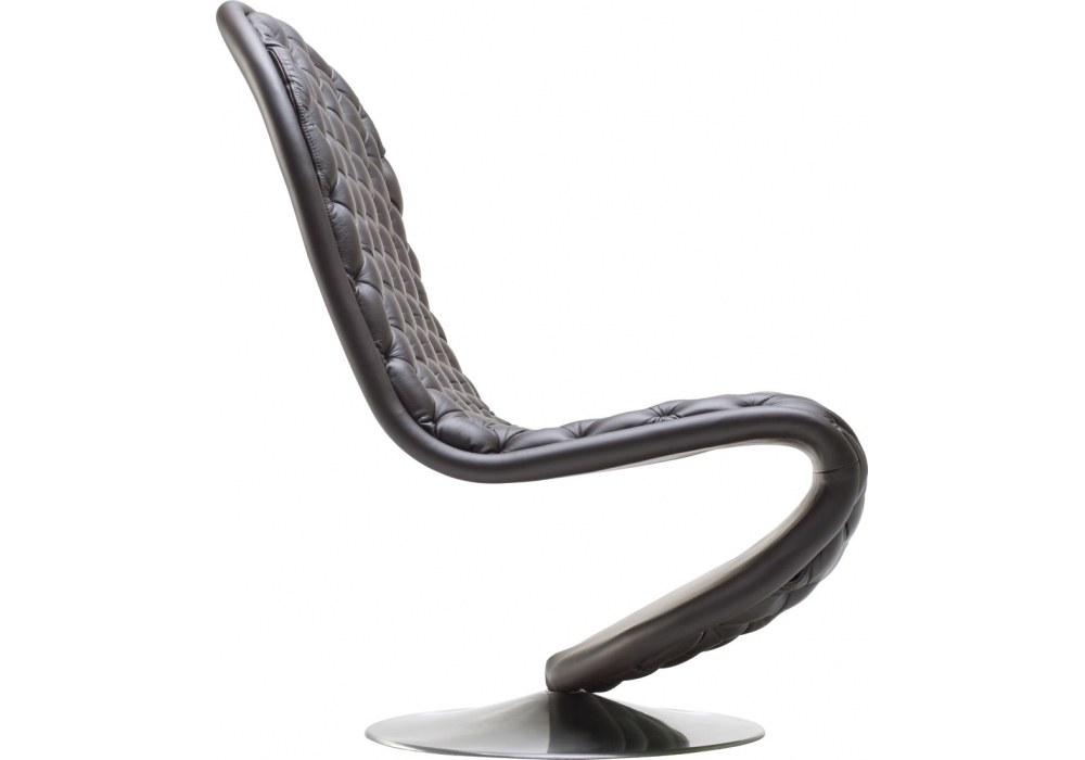 System 1-2-3 Lounge Deluxe diseñado por Verner Panton para Verpan es un sillón en forma de S con base redonda en aluminio cepillado y tapizado disponible en varios tejidos y pieles.