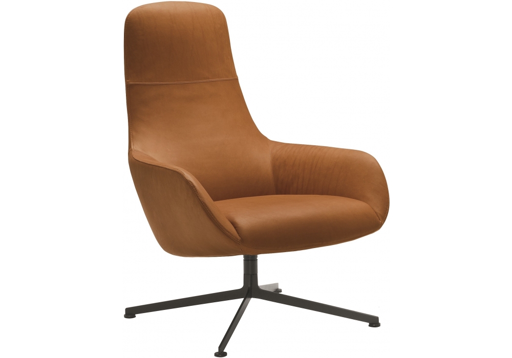 896 Kent diseñada por Ludovica & Roberto Palomba para Zanotta es una butaca giratoria con base en acero pintado. Relleno de espuma de poliuretano multidensidad autoextinguible / fibra de poliéster termosoldada. Revestimiento desenfundable en tejido o piel. Disponible con o sin puf.