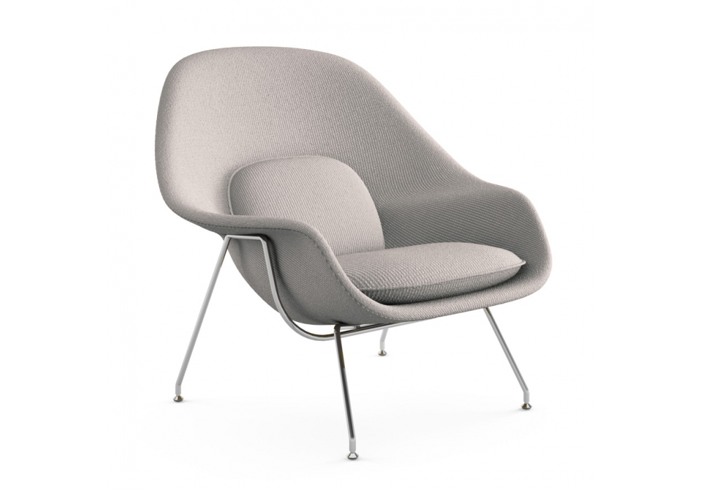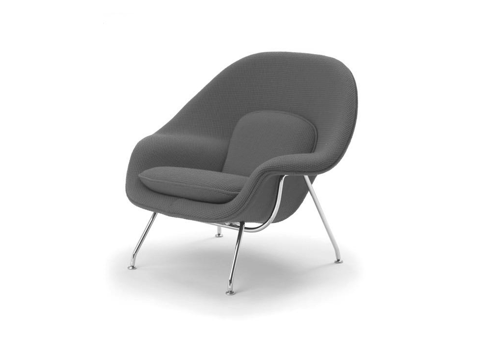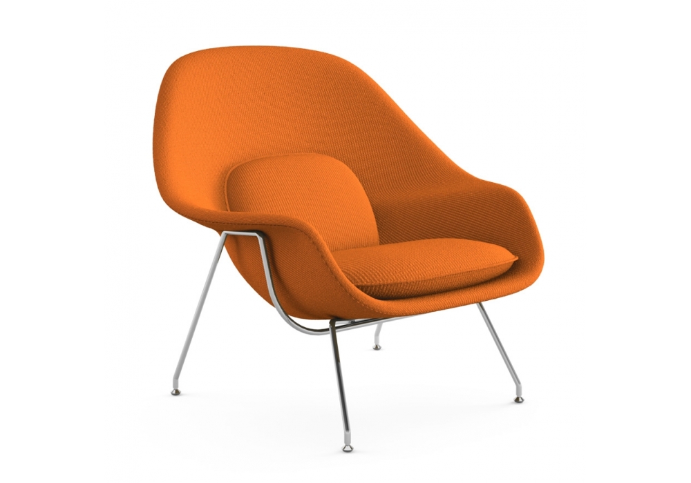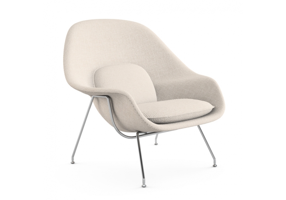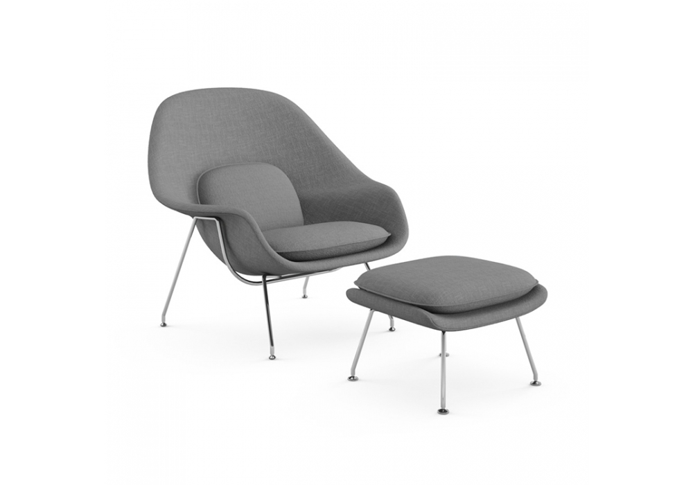 Womb diseñado por Eero Saarinen para Knoll es un sillón con estructura de acero cromado o pintado en negro. Tapizado en tela o piel. Disponible en versión con o sin reposapiés.