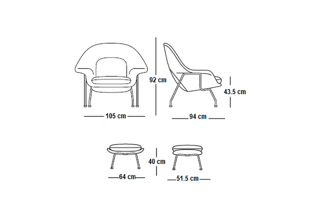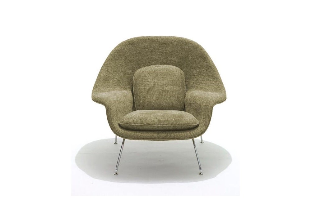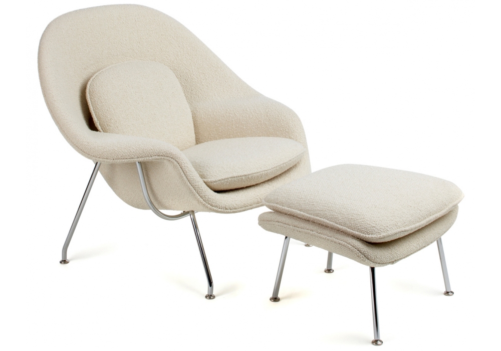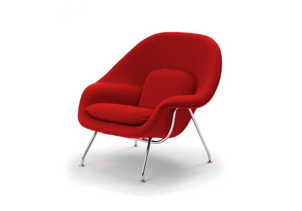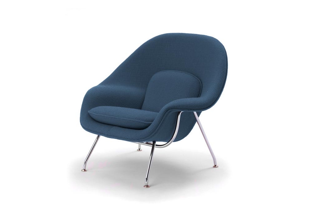 Womb diseñado por Eero Saarinen para Knoll es un sillón con estructura de acero cromado o pintado en negro. Tapizado en tela o piel. Disponible en versión con o sin reposapiés.