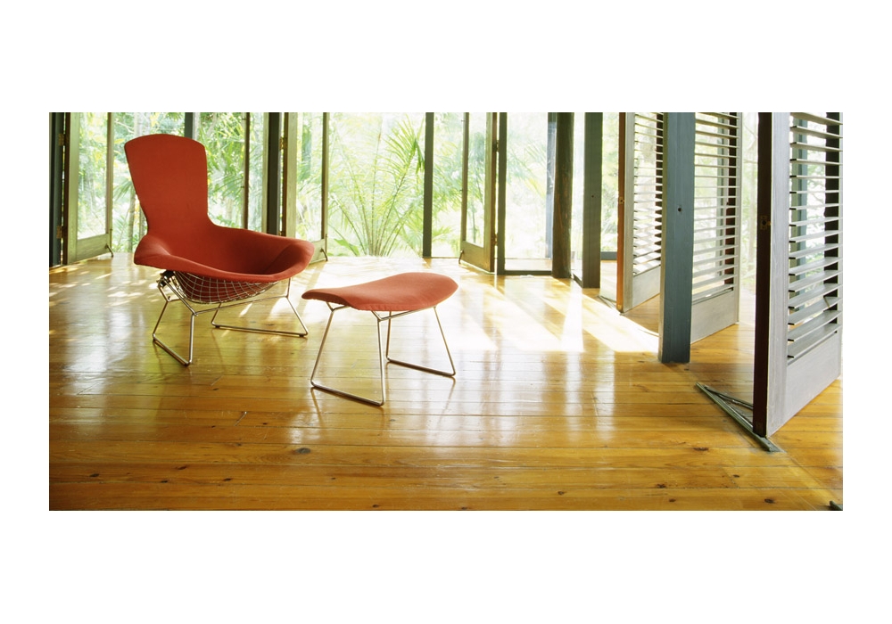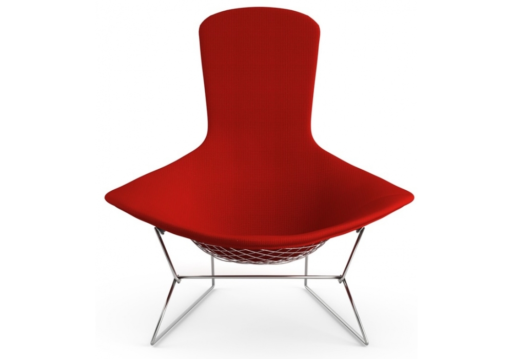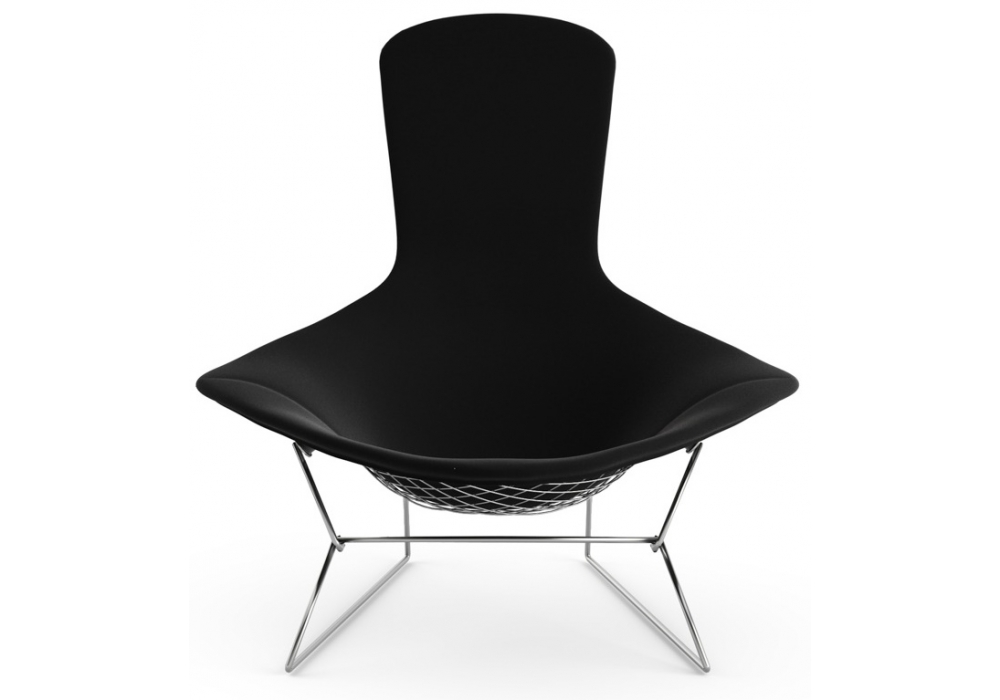 Bertoia Bird Chair diseñado por Harry Bertoia para Knoll es un sillòn con estructura de varilla de acero soldada en cada cruce con acabado en cromo pulido o en Rilsan blanco o negro. Tapizado en diferentes tejidos. Disponible con o sin taburete.